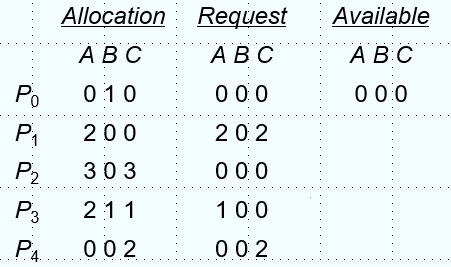 finish[i]==false,则系统陷入了死锁,并且是$P_i $陷入了死锁