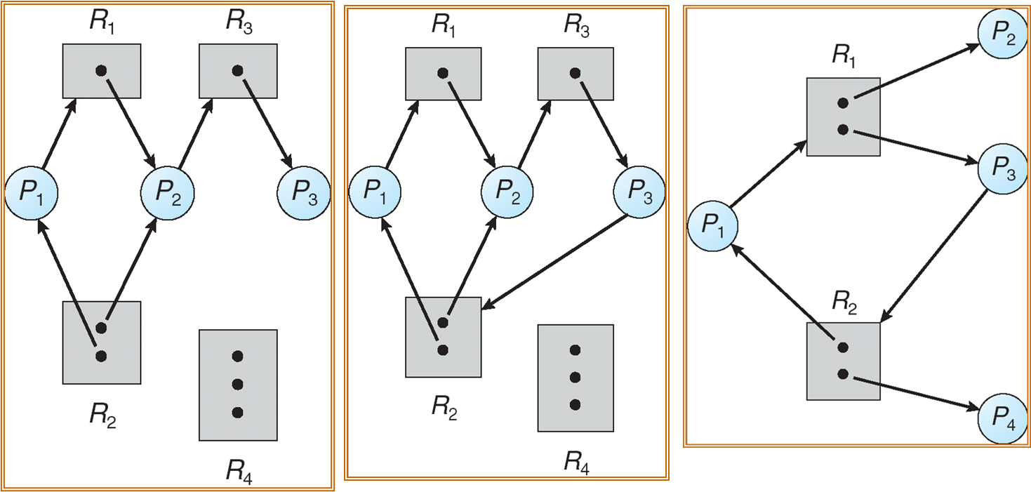 - 每种资源有多份实例,可能有死锁