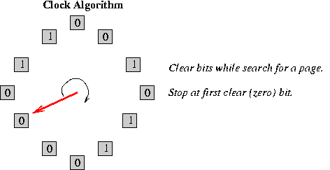 - 第二次扫描:如果没有找到,则再扫一次,目标是(0, 1),扫描过程中将引用位清零