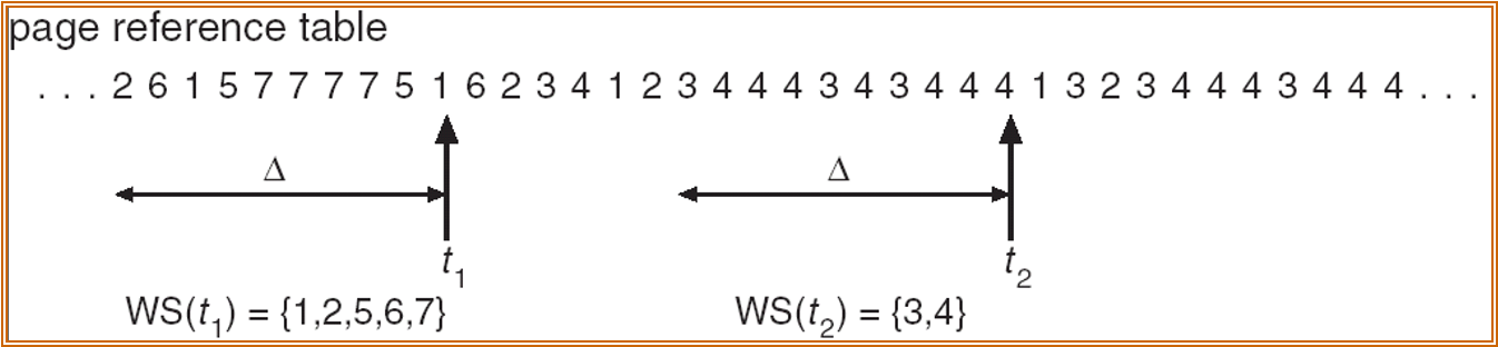 - $\Delta $ $\equiv \(working-set-window\)\equiv $a fixed number of page reference
