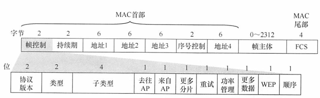 - 帧控制字段:类型字段和子类型字段用于区分帧的功能