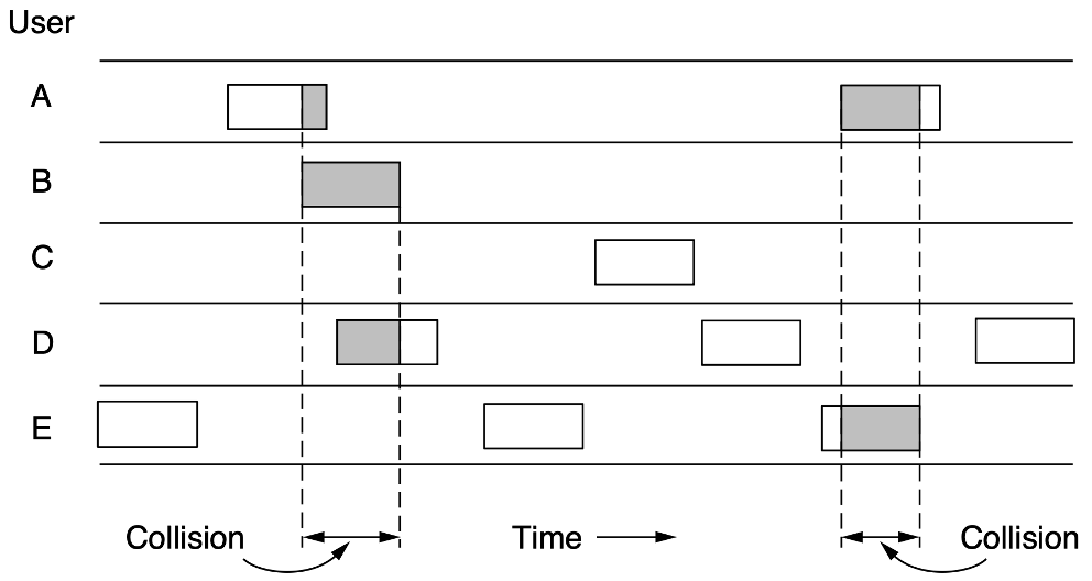 PURE-ALOHA 的基本思想是总线型网络中的任何站点需要发送数据时,可以不进行任何检测,立刻发送。若一段时间内未收到确认,则该站点认为传输过程中发生了冲突,等待一段随机时间后重发数据(立刻重传一定会再次冲突),直至发送成功。