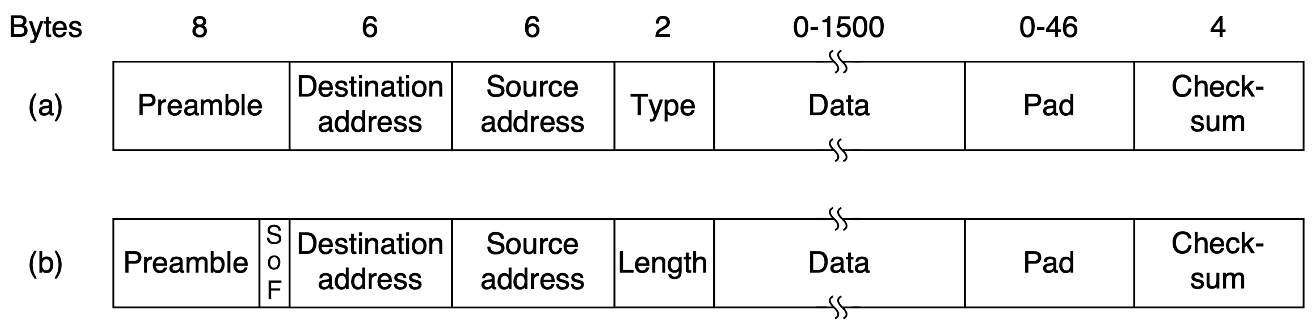- 校验码(FCS):4B,校验范围是从目的地址到数据字段,采用32b CRC码