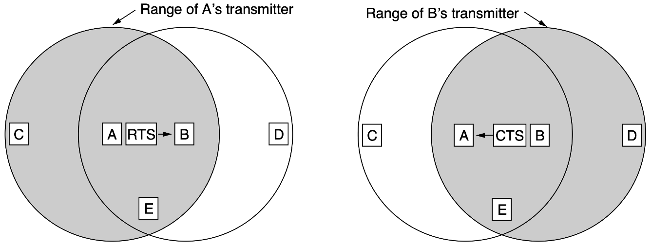 - 若AP成功收到RTS帧,且信道空闲,则等待时间SIFS后,广播一个允许发送(Clear To Send)控制帧,它也包括了这次通信所需的持续时间